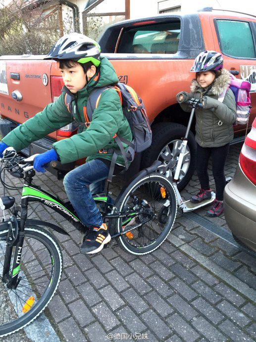 早上骑车上学时也带着妹妹,但是据说等妹妹一遇到她的同学,哥哥就没影了,哈哈