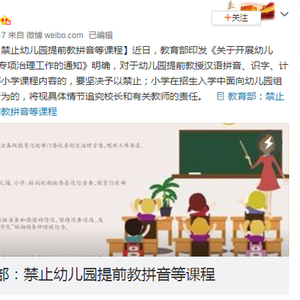随后,北京市教委表示,北京将严查幼儿园上英语、拼音课的现象,教小朋友进行20以上的加减乘除运算等教授小学阶段知识的做法。一旦发现幼儿园小学化的倾向,幼儿园将被降级降类。
