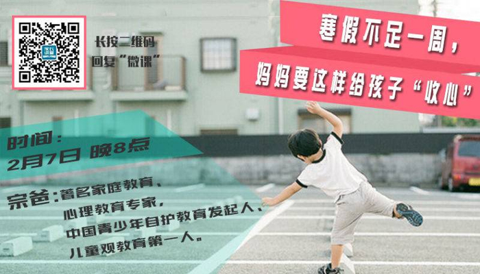 2月7日(周二)晚8点,著名教育专家、央视多档教育栏目嘉宾宗爸将告诉你答案。长按下方二维码,回复“微课”获取免费入场方式