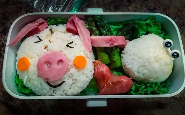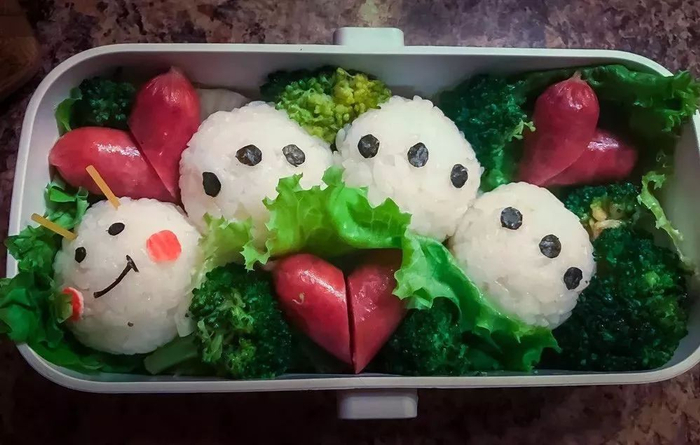 每次早起给娃做便当的时候,我常常一边做一边想象娃打开便当盒的表情,就会情不自禁地嘴角上扬。自从开始做便当之后,我和娃之间对话的画风就成了“妈咪,我把被子吃光了。”“妈咪,我还没来得及吃Hello Kitty的腿。”😳(冏的表情?)。