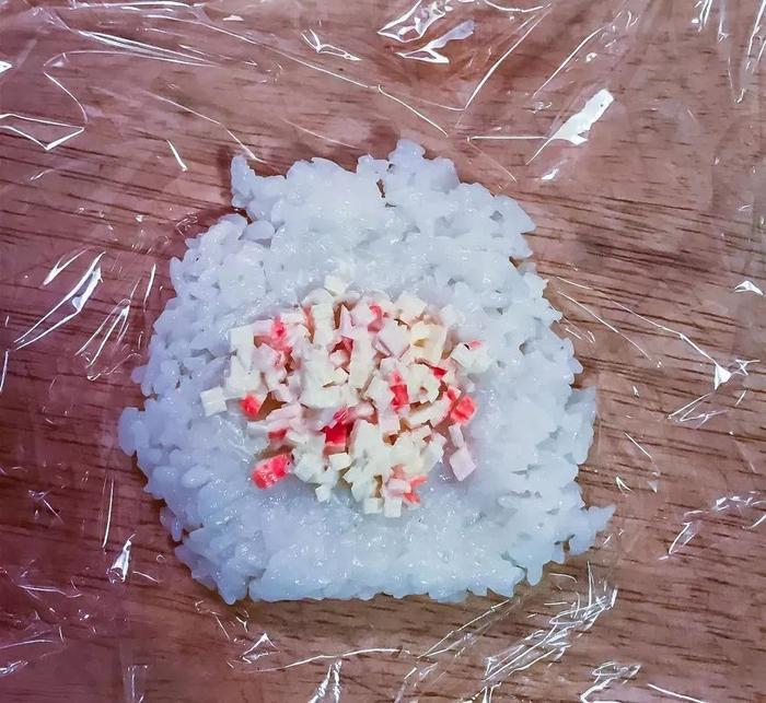 2)想让米饭吃起来没那么寡淡的话,可以在饭团里包馅儿,比如蟹肉碎、鱼松、肉松之类,或者做便当剩的一些边角料,用日式蛋黄酱稍微拌一拌就可以包进饭团里。我自己试吃过,放凉之后加了馅料的饭团真的挺好吃哒。🙂