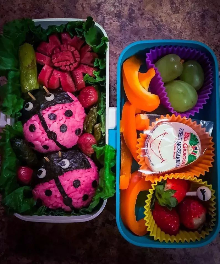 小瓢虫就是用米饭+兑水的甜菜粉+海苔做的,甜菜粉很好用呢。