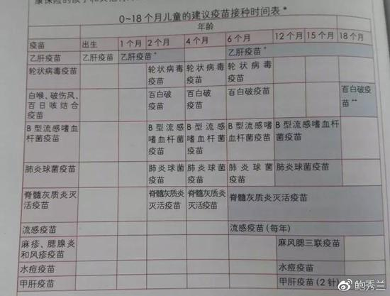 接种的疫苗的时间表: