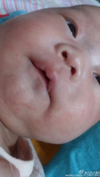 张思莱医师:像是湿疹,如果孩子对牛奶蛋白不过敏可以试试郁美净儿童霜涂抹。另外计算每天配方奶中维生素D 的含量不足400IU,只补充不足的部分。
