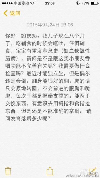 10.@用户:你好,鲍奶奶。我儿子现在八个月,问题较多,麻烦百忙之中抽空回答,非常感谢!