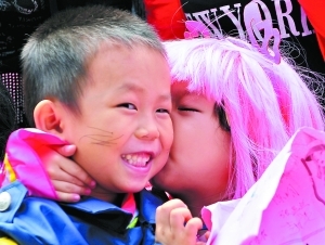 儿童对亲昵行为的认知与成人并不相同。(记者乔军伟摄)