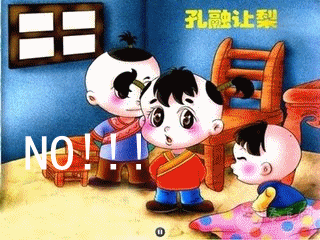 这个皆大欢喜的结局比中国式的孔融让梨要欢乐几百倍,也有创造性得多。那种强制性灌输性的孔融让梨其实是双输,让的人心里觉得委屈,接受的人道德上觉得亏欠,到头来谁也不舒服。我儿子就曾经质问过我孔融让梨的故事不合逻辑,说孔融这么小就要把大的梨让给哥哥吃,那么那个比他大的哥哥反而不用让梨了吗?哥哥反而可以心安理得吃大的了吗?