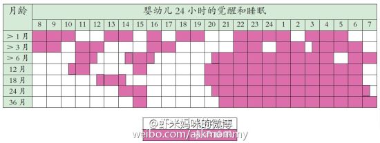 新生儿:没有白天和黑夜的概念,饱了就睡,饿了就醒,通常能一口气睡上2~4个小时。大约从6周开始,夜间睡眠时间逐渐延长。