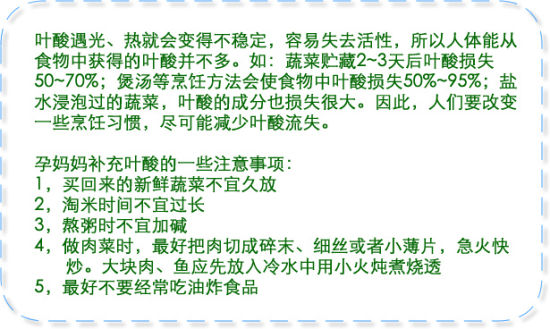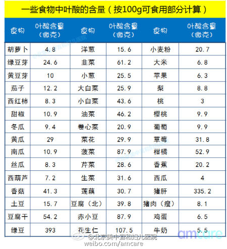 当然,虽不及合成叶酸,天然食物中的叶酸也是有效的。尤其是那些因为种种原因未服用叶酸补充剂的孕妇和准孕妇,饮食中要多摄入富含叶酸的食物,如绿色蔬菜、动物肝肾、豆制品、水果和坚果等。以下可供大家参考