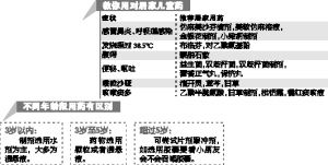 此外,小朋友还容易出现腹泻、腹疼、便秘、呕吐等消化道疾病症状。谭小华建议,这时候可以准备补充有盐分、水分的药,止泻药就用蒙脱石散。“儿童食滞、胃肠消化不良则可以用益生菌、双歧杆菌、双歧杆菌制剂,再小一点的宝宝(处于母乳喂养期)可以用枯草杆菌类和复合的维生素B。中成药可选藿香正气丸、保济丸。”谭小华称。