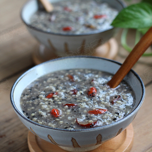 用料:小米70g、糯米30g、黑芝麻20g、红枣4颗、枸杞5g、清水1000ml