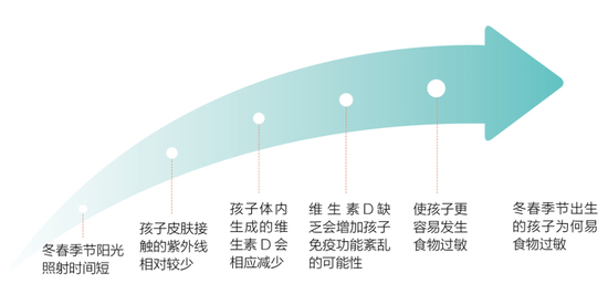 所以,冬春季节出生的孩子家长应该适当带他们出去晒晒太阳,补充维生素D,足够的维生素D可以减少食物过敏的发生。但家长要注意给孩子保暖,不要让孩子着凉了。