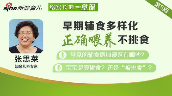 近日,知名儿科专家张思莱医师,做客新浪育儿《给家长的一堂课》栏目,为大家答疑解惑。宝宝早期辅食多样应该如何做?宝宝偏食挑食的行为该如何纠正?一起来听听张思莱教授的观点!<<点击观看完整视频>>