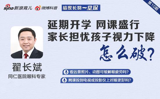特殊时期,为确保学生安全,全国多地决定不同程度的延迟开学。据最新调查显示家长对于“停课不停学”,选择网络课程是最主要的措施。同时孩子长时间接触电脑、手机等电子设备,保护视力问题成为家长的心头大患。5G时代即将到来,电子设备避无可避,可孩童时期的视力问题伴随终生,如何科学平衡二者关系?北京同仁医院视光中心主任医师翟长斌做客《给家长的一堂课》栏目,与您聊聊保护视力那些事。 点击观看完整视频>>