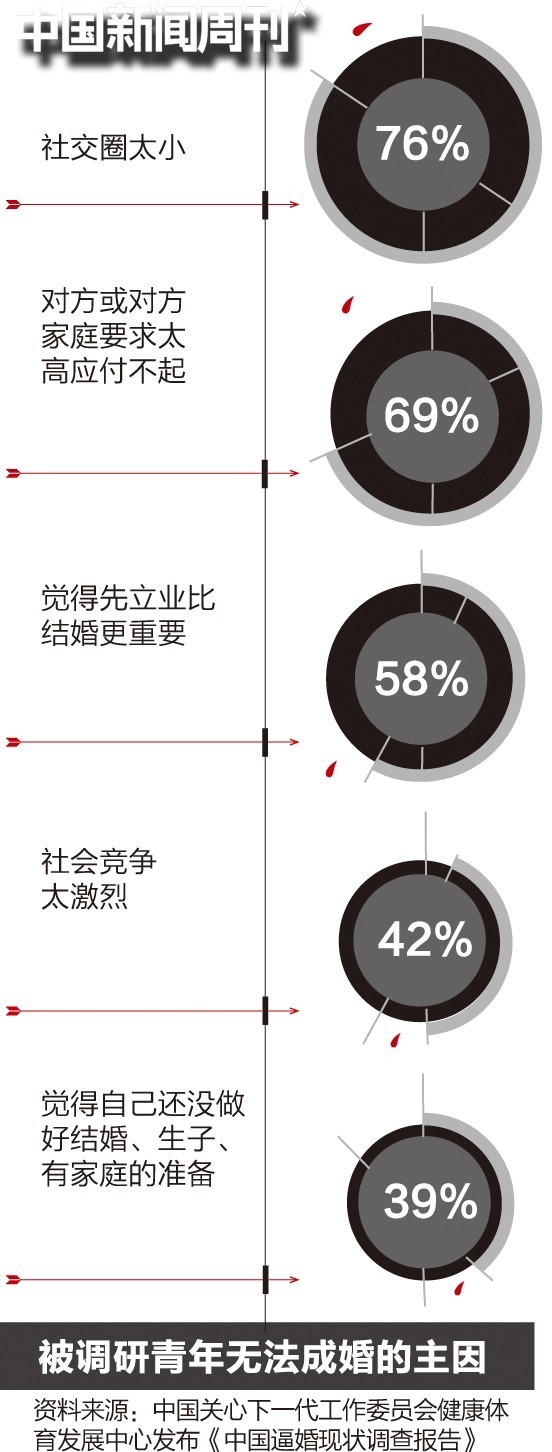 “‘逼婚’”这个词语的出现,其实是年轻人个体自主性增强的表现。父母只是唠叨,并没有真正把你绑起来,送到谁家里去。年轻人占强势一方,父母其实很弱势,只能敲边鼓、摆个摊,做劝说、服务性工作”,中国社会科学院家庭与性别研究室主任吴小英告诉《中国新闻周刊》。
