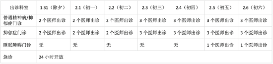 2、2022年1月31日至2月6日精神科急诊每天24小时开放。