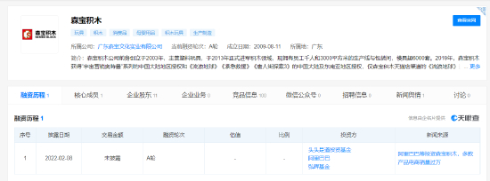 2月10日消息,近日广东森宝文化实业有限公司(以下简称森宝积木)完成了新一轮融资,股东新增投资方为头头是道基金、阿里巴巴、弘晖资本。
