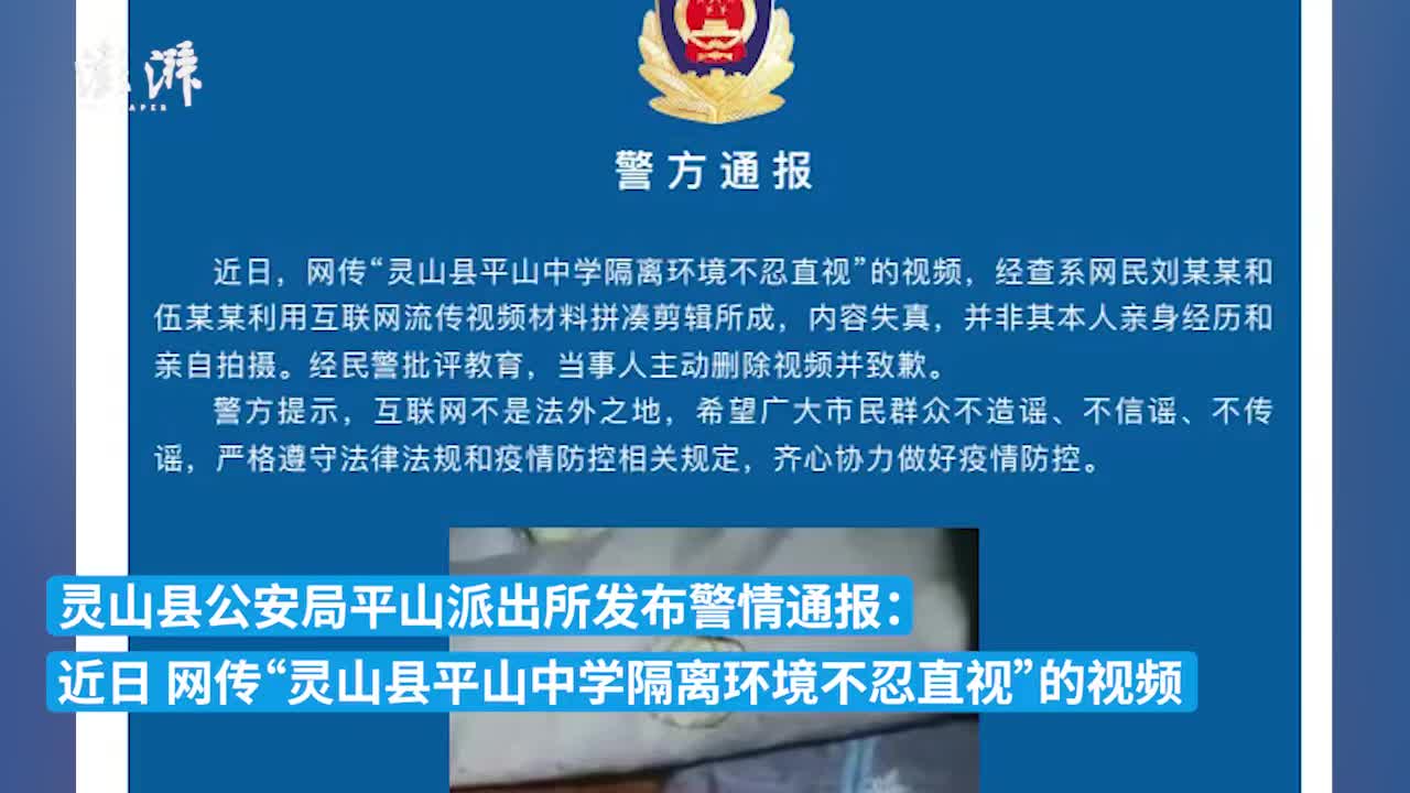 广西钦州警方辟谣“平山中学隔离环境不忍直视”:视频系拼凑