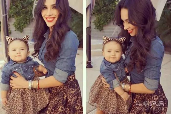 牛仔上衣配豹纹裙,还有同样是豹纹款的毛绒耳朵发箍,从小跟着麻麻轻松驾驭性感风。▼