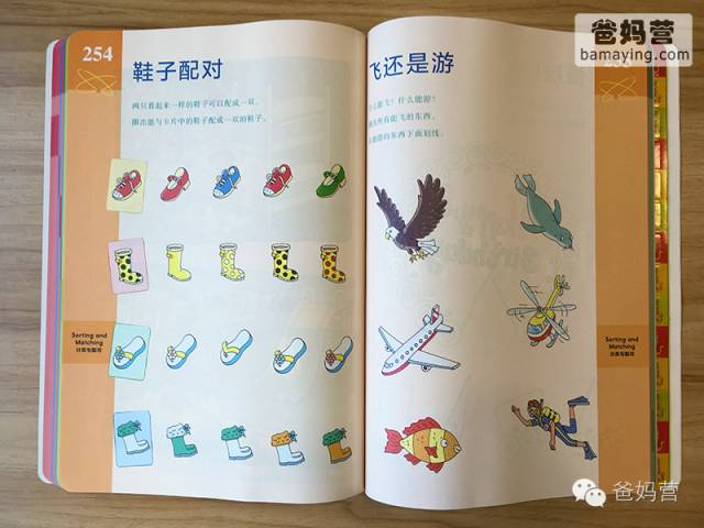 涉及英语的内容(占全书的60%)都是中英双语的,爸妈可以用中文或者英文给孩子讲解题目,稍加引导;