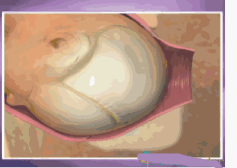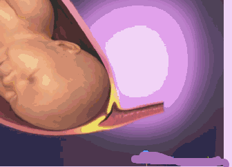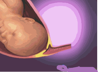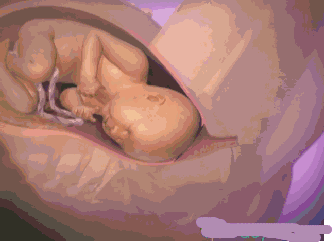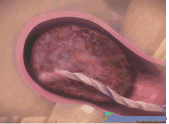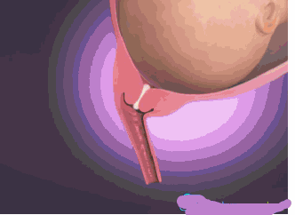 4、子宫开始有规律的收缩,这种收缩带来的就是剧痛,子宫颈胀大, 分开,胎儿宝宝也很努力的想冲出生殖道 ,分娩马上要开始了。