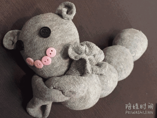 ● 将剪过小角的袜子围在毛毛虫的脖子上,也是美美哒。