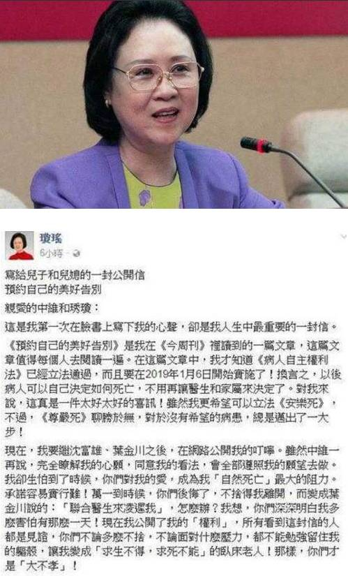在信中,她叮嘱儿子,无论自己生什么大病,都不要动大手术,送加护病房,决不能插鼻胃管,只要让她没有痛苦地死去就好。