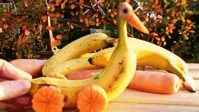 香蕉是容易拗造型的水果之一啦,它在水果界的星光大道拥有一颗超级大星星!它弯弯的小身躯可以做出超多可爱的造型。想让宝宝WOW一声,这只萌萌哒小海豚一定能满足你~