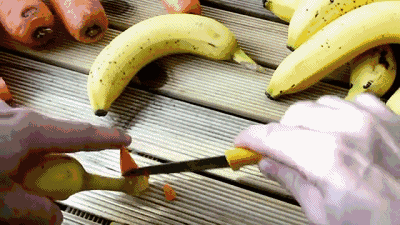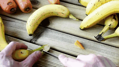 开口小海豚很简单,把香蕉头部切个口,切一小片出来就ok啦~使用刀具时让小宝宝躲远点哦~宝宝安全第一!