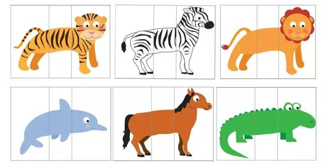 这个打印版,适合2岁左右的宝宝。把这些动物打印出来,沿着中线裁剪开,再钉起来,就可以给娃翻着玩啦。