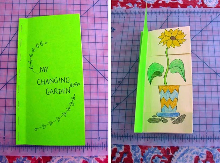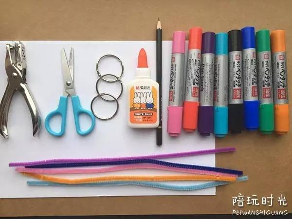 准备材料:白纸若干张、硬卡纸、彩笔、铅笔、打孔器、剪刀、白胶、毛根、活页卡扣
