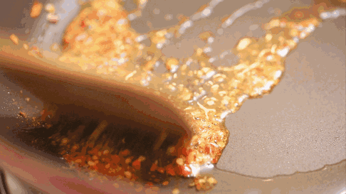 油五成热时下芝麻关火搅拌均匀,芝麻和辣椒的香辣恰到好处,还能有效避免糊锅。