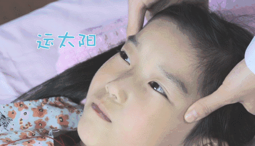 揉太阳操作:用中指的指端揉宝宝的太阳穴(太阳穴位置:眉毛后凹陷处),操作次数:50次