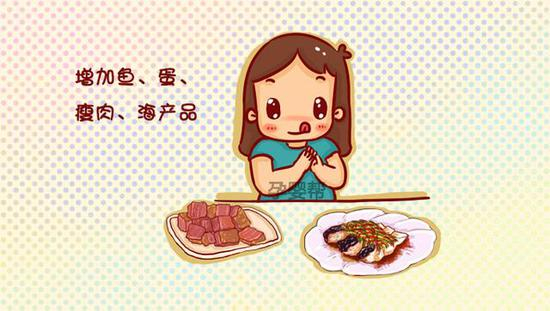 常见的鱼、蛋、瘦肉等都是优质蛋白的主要来源,除此之外,鱼中的不饱和脂肪酸、蛋类的卵磷脂、维生素都是绝佳的营养物质,海产品也可用作补充适量的碘元素。
