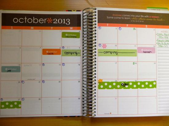 · 月历里面排进去的大目标也能成为生活中的亮点和努力成长的目标。比如:钢琴演奏会将会是孩子努力练琴的目标和动力,自己的生日派对将会是努力做完作业可以腾出时间来计划的大事。