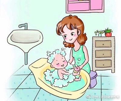 4、小儿洗澡后在皮肤皱褶部位可以扑些痱子粉或涂上防痱水。