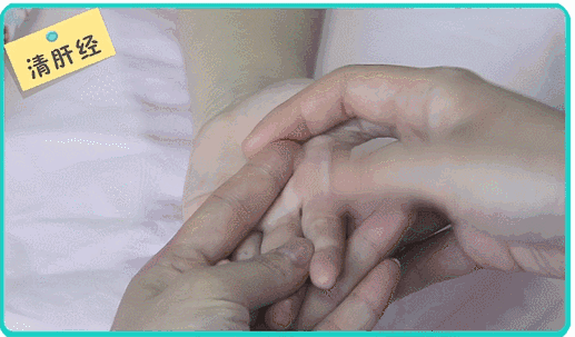 操作方法:用推法,自中指掌面末节指纹起,推向指尖,操作200次。
