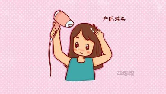 3、洗头时,妈妈们可以用指腹按摩头皮,洗完后立即用毛巾擦干,避免受到冷气吹袭。