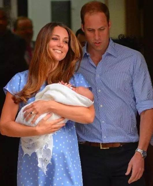 当时媒体的照片里,威廉一脸担心老婆能不能扛得住。。。凯特却笑容满面,抱着襁褓中的小乔治,走路都带风。。。