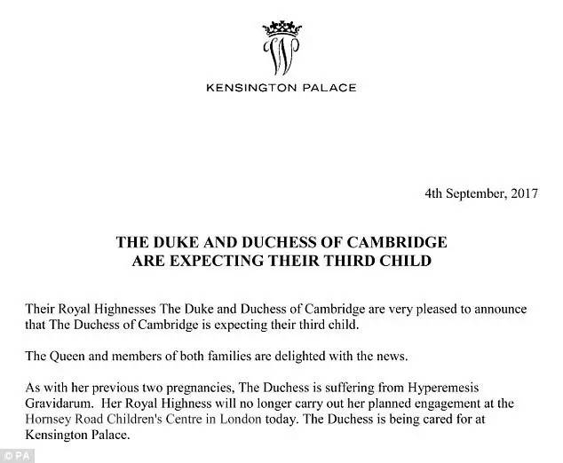 英国时间9月4号上午9点钟,肯辛顿宫的官方推特账号向公众公开了这个消息。。。