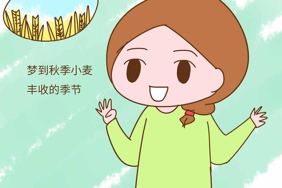 @全都有:在孕期5个月的时候,那个时候是冬天,居然梦到秋季小麦丰收的季节,黄灿灿的麦子非常耀眼,从这头可以看到远方,感觉特别开心,后来生下了我儿子,他现在可勤劳了,非常懂事。