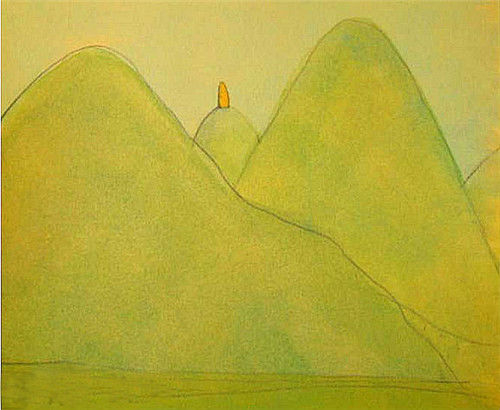 我的嘴巴插在了高山上。(嘴巴在高山上,是否意味着孩子想喊又喊不出来,想表达又无法尽意表达?)