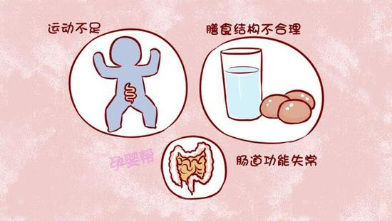 宝宝运动不足也是造成便秘的原因之一,运动不足导致消化功能变弱,肠道蠕动减少,进而导致便秘。