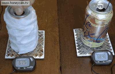 有人专门做了测试,将两瓶相同的饮料一起冷藏到冰箱,一瓶用湿纸巾包裹,另一瓶没有做任何处理。
