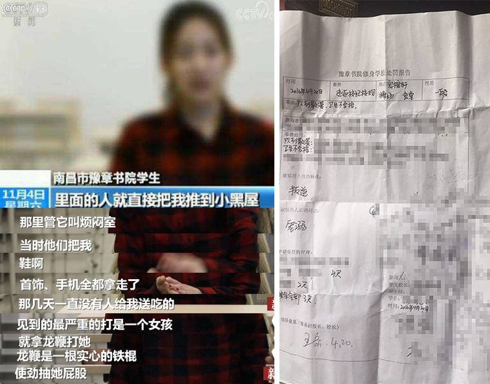 豫章书院的孩子们说:“学生挨打是经常的事,从起床、叠衣服、吃饭等各项事情没达到学校的要求都会被挨打。”