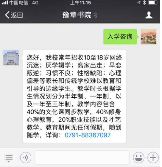 但不要忘了,在豫章书院之前,还有龙悔书院、还有杨永信的电击疗法、还有打着各种名目和旗帜的“特殊教育”机构。而打开搜索,戒网瘾、叛逆孩子学校依然铺天盖地。