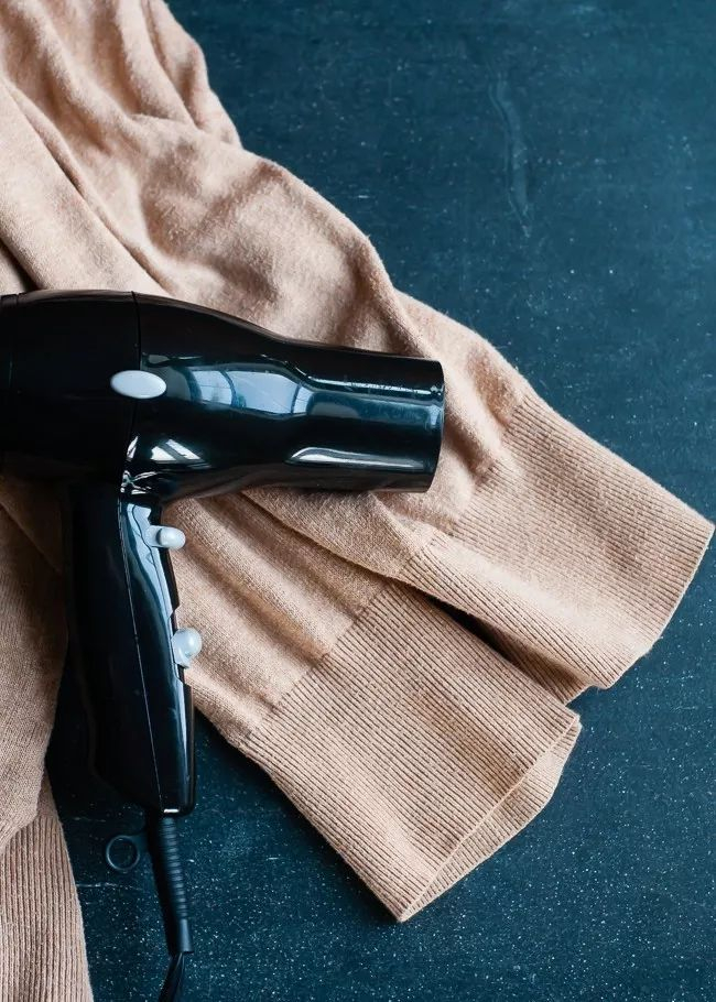 把吹风机调到暖风档,风筒口塞进保鲜袋,握住袋口吹4、5分钟。