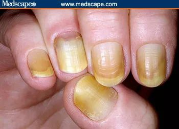 蓝灰色的指甲表明心脏病或肺部疾病;