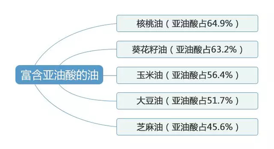 核桃油/葵花籽油/玉米油等常见油>紫苏油/亚麻籽油>橄榄油/山茶油