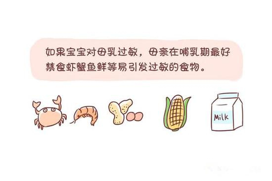 2、忌食海鲜鸡蛋,湿疹可能是过敏性疾病的表现,那么纯母乳喂养的妈妈们就要回避疑似过敏的食物了。